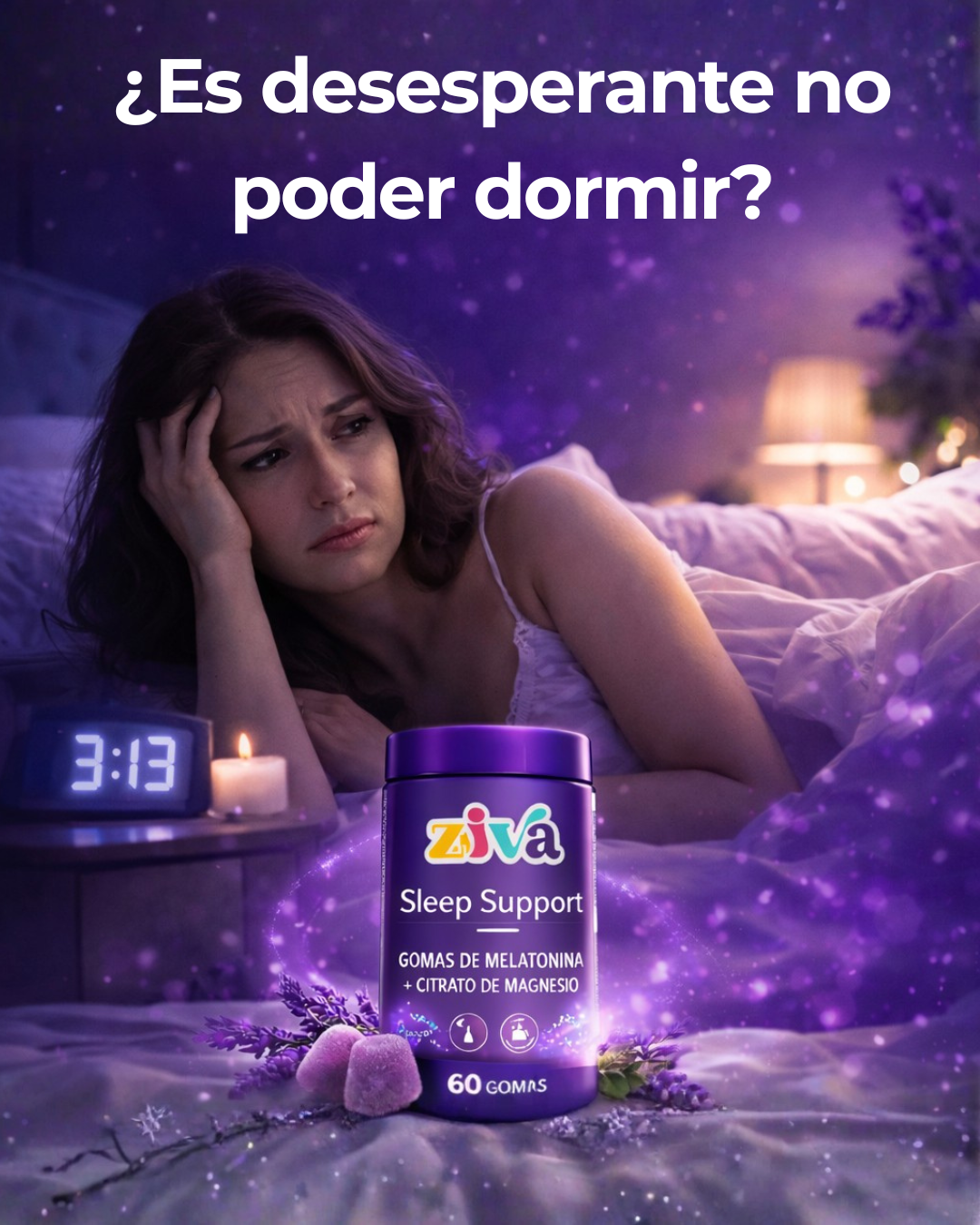 Fórmula limpia de dos ingredientes con propósito claro. 3mg de Melatonina + 200mg de Citrato de Magnesio. Vegano, sin gluten y diseñado para usarse en la noche. 60 gomas por frasco.